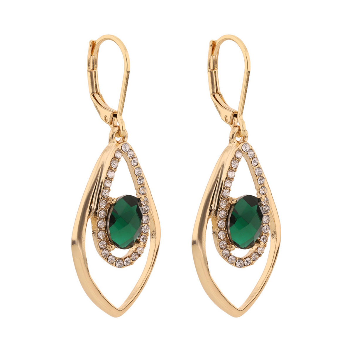 Aretes color dorado anne klein forma gota tipo colgante largo , cierre tipo gancho frances, familia fashionably festive, contenido 1 par de aretes