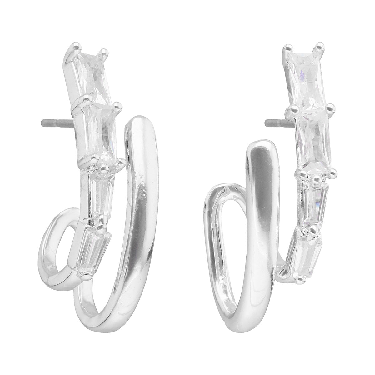 Aretes color plateado anne klein forma aros tipo bot—n con incrustaciones de cristal, cierre tipo poste, familia silver bells, contenido 1 par de aretes