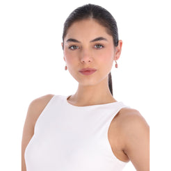 Aretes color dorado anne klein forma ovalado tipo broche con incrustaciones de pedrería pave pave cierre gancho frances rojo 1 par de aretes