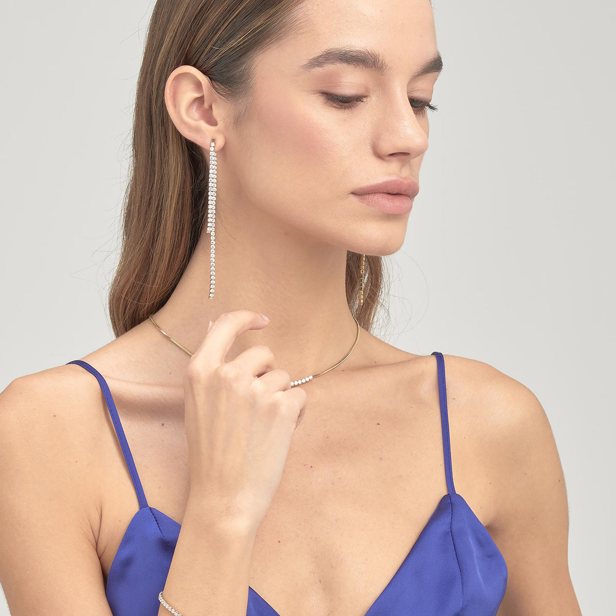 Aretes de acero inoxidable 316l color dorado con circonita cúbica color claro.