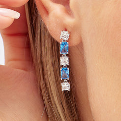 Arete individual colgante de plata de ley 925. con circonita cúbica y corte baguette color zafiro.