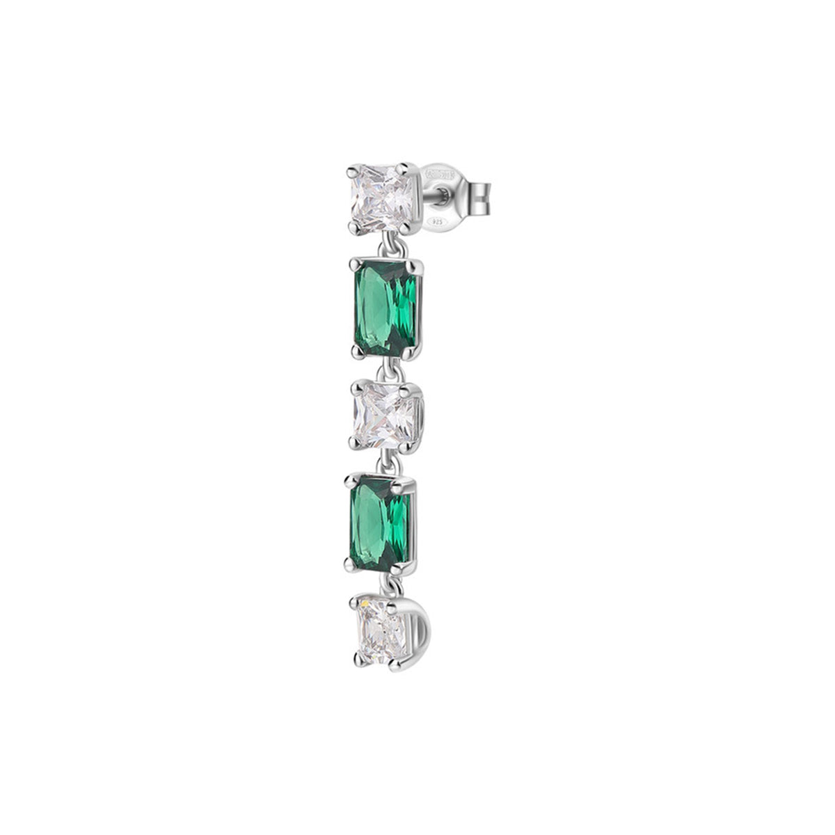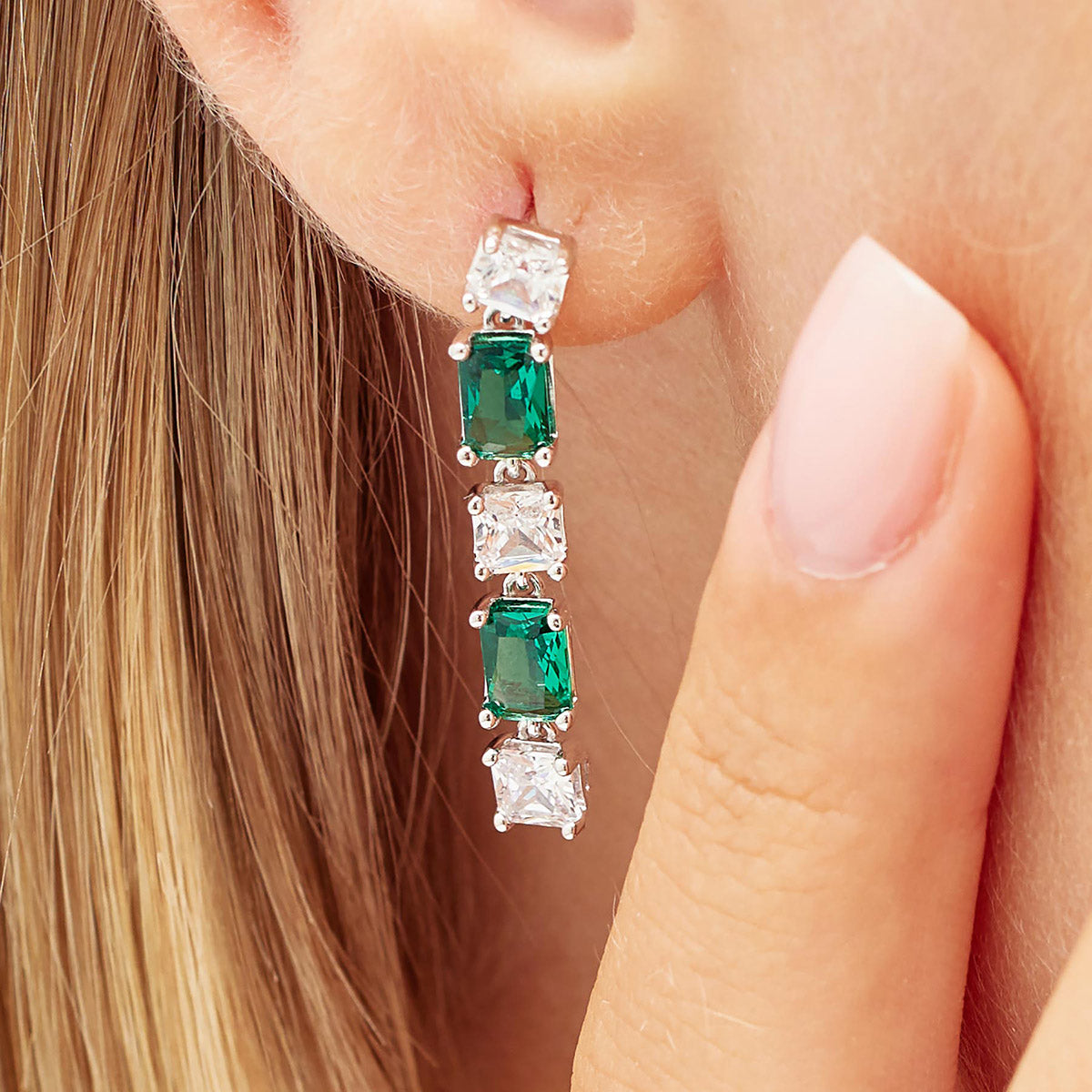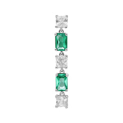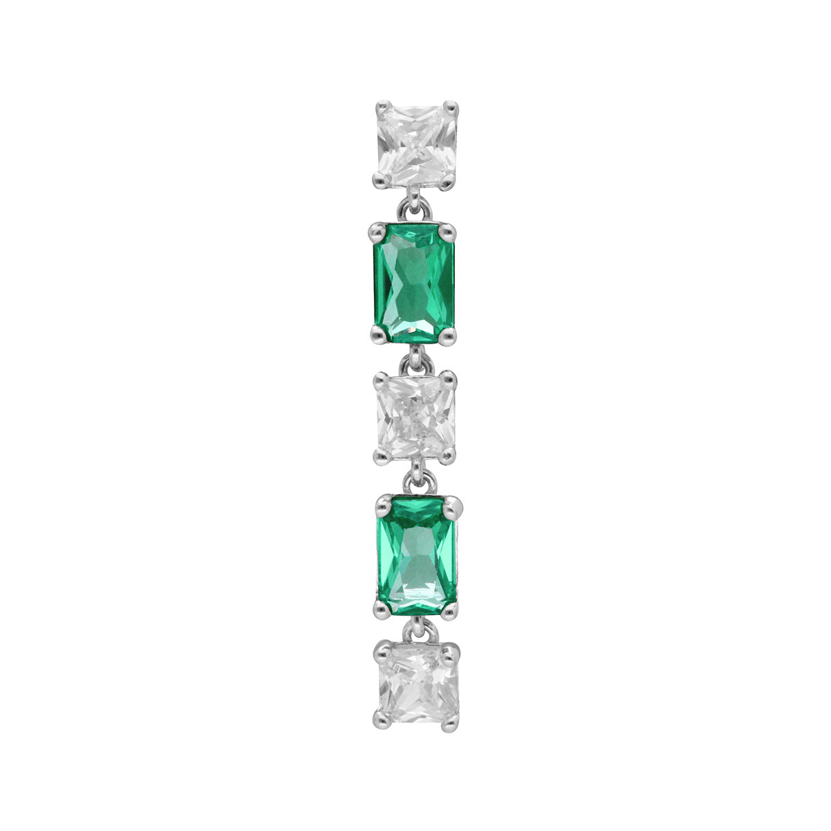 Arete individual colgante de plata de ley 925. con circonita cúbica y corte baguette color esmeralda.
