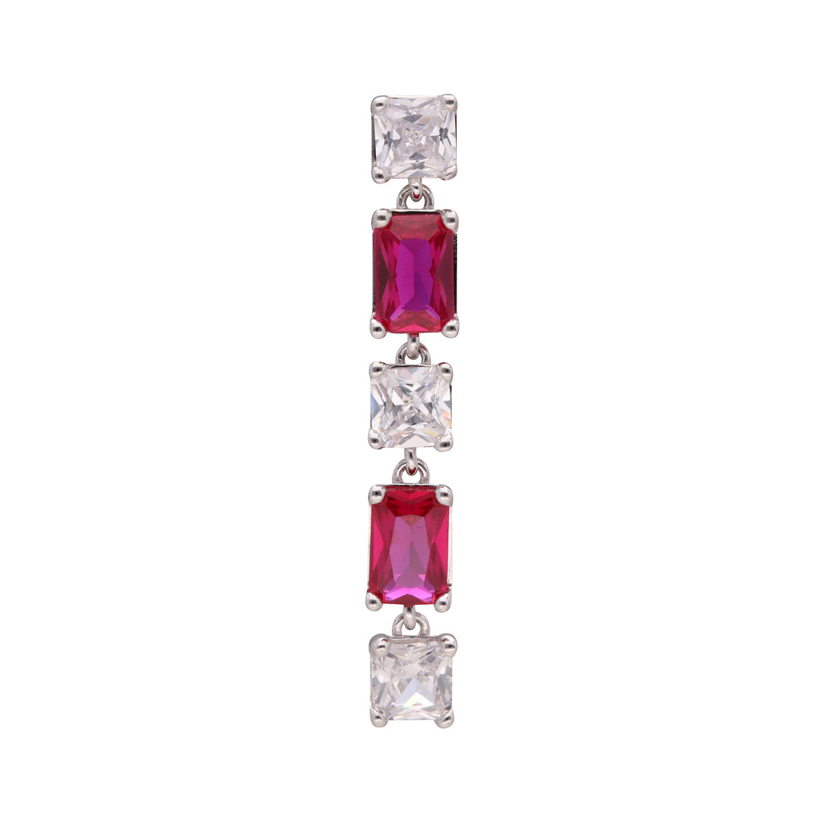 Arete individual colgante de plata de ley 925. con circonita cúbica y corte baguette color rubí.