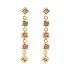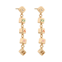 Aretes color dorado, coach, forma letra c tipo colgante largo cubos con letra c, cierre tipo poste, familia 7.1 coach beads, contenido 1 par de aretes