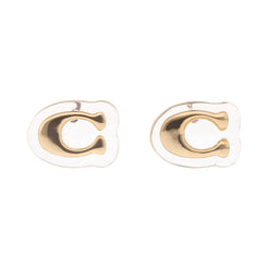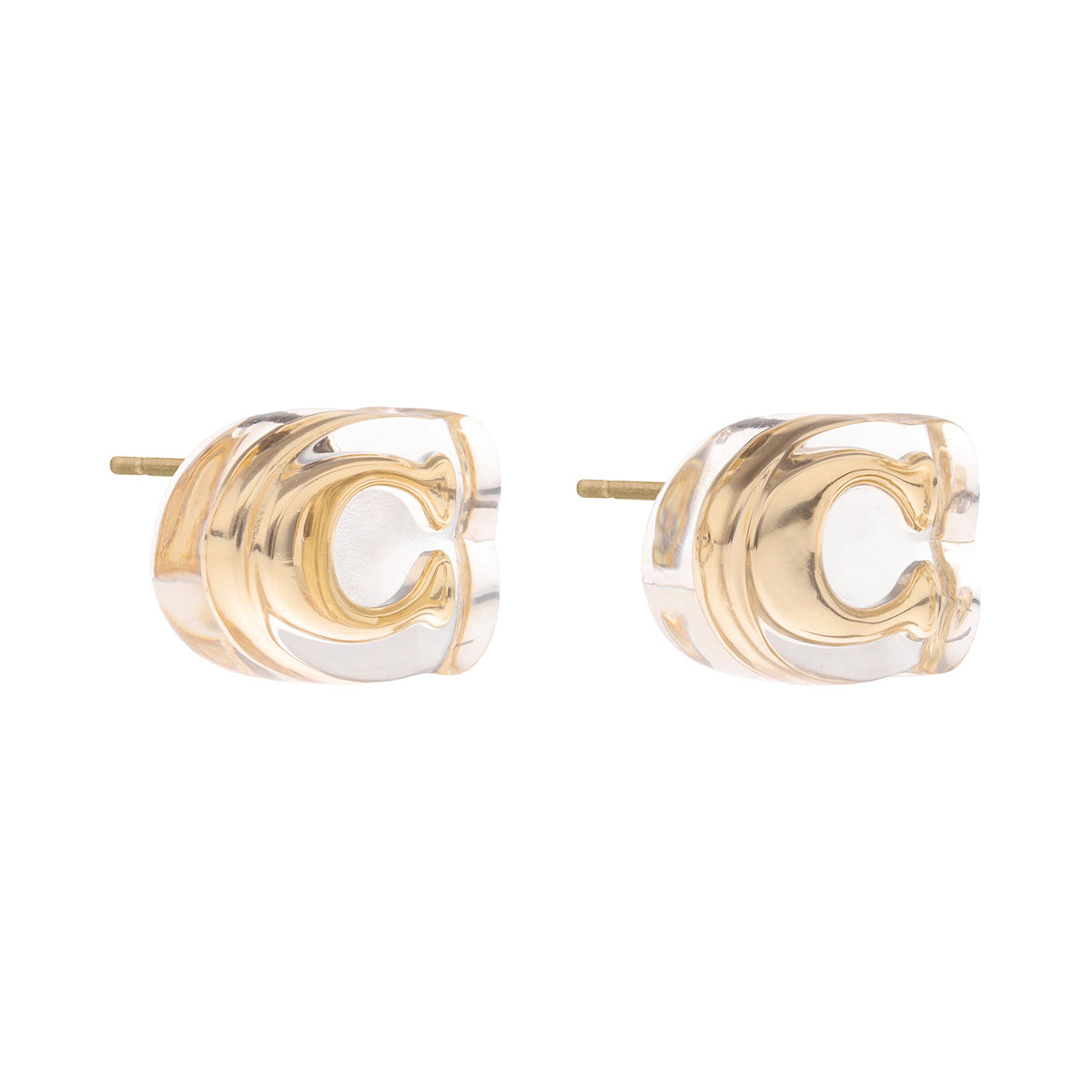 Aretes color dorado con esmalte, coach, forma "c" tipo con logo c, , familia 10.1 embedded lucite, contenido 1 par de aretes