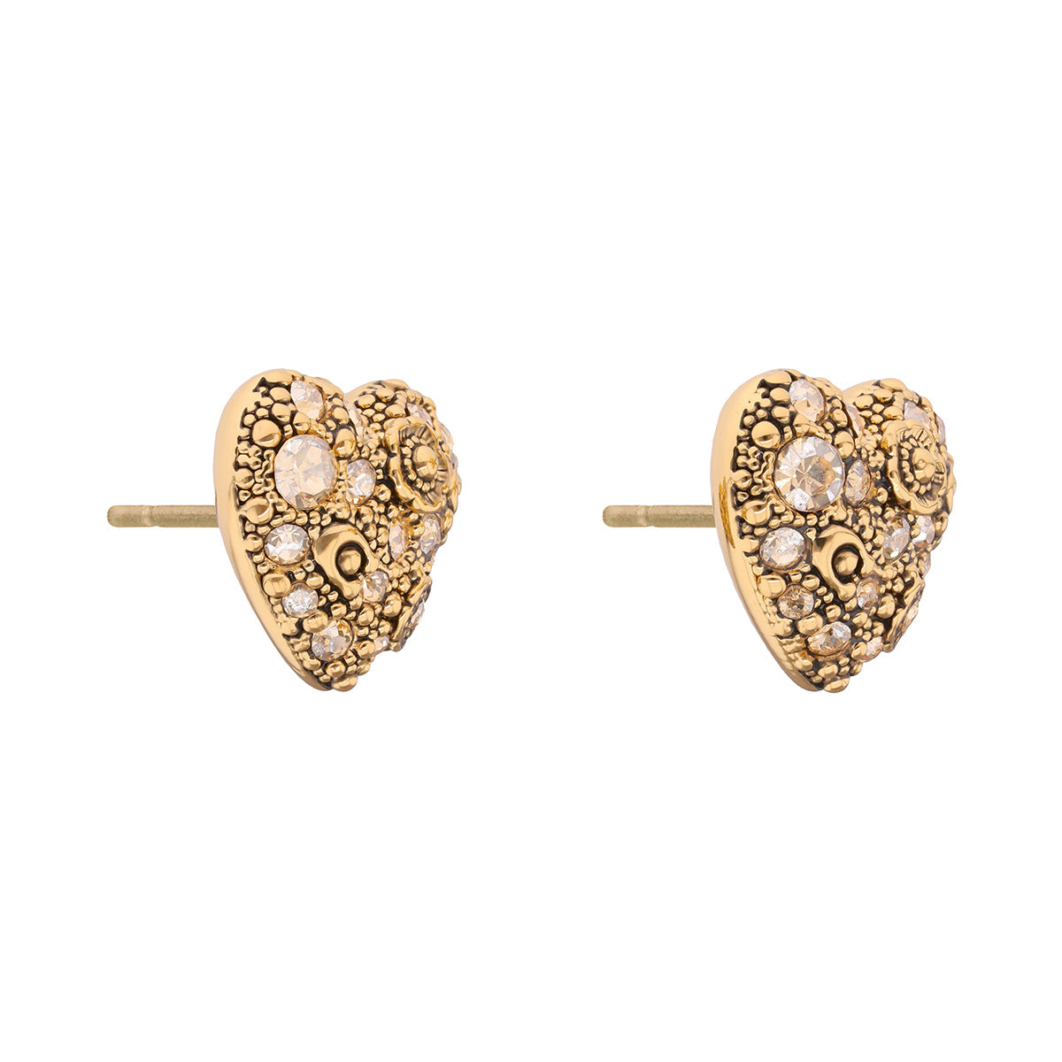 Aretes color dorado, coach, forma corazón tipo poste con branding c, , familia 10.1 gifting, contenido 1 par de aretes