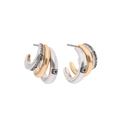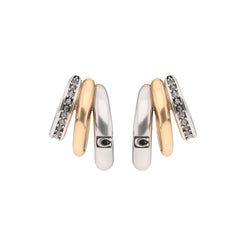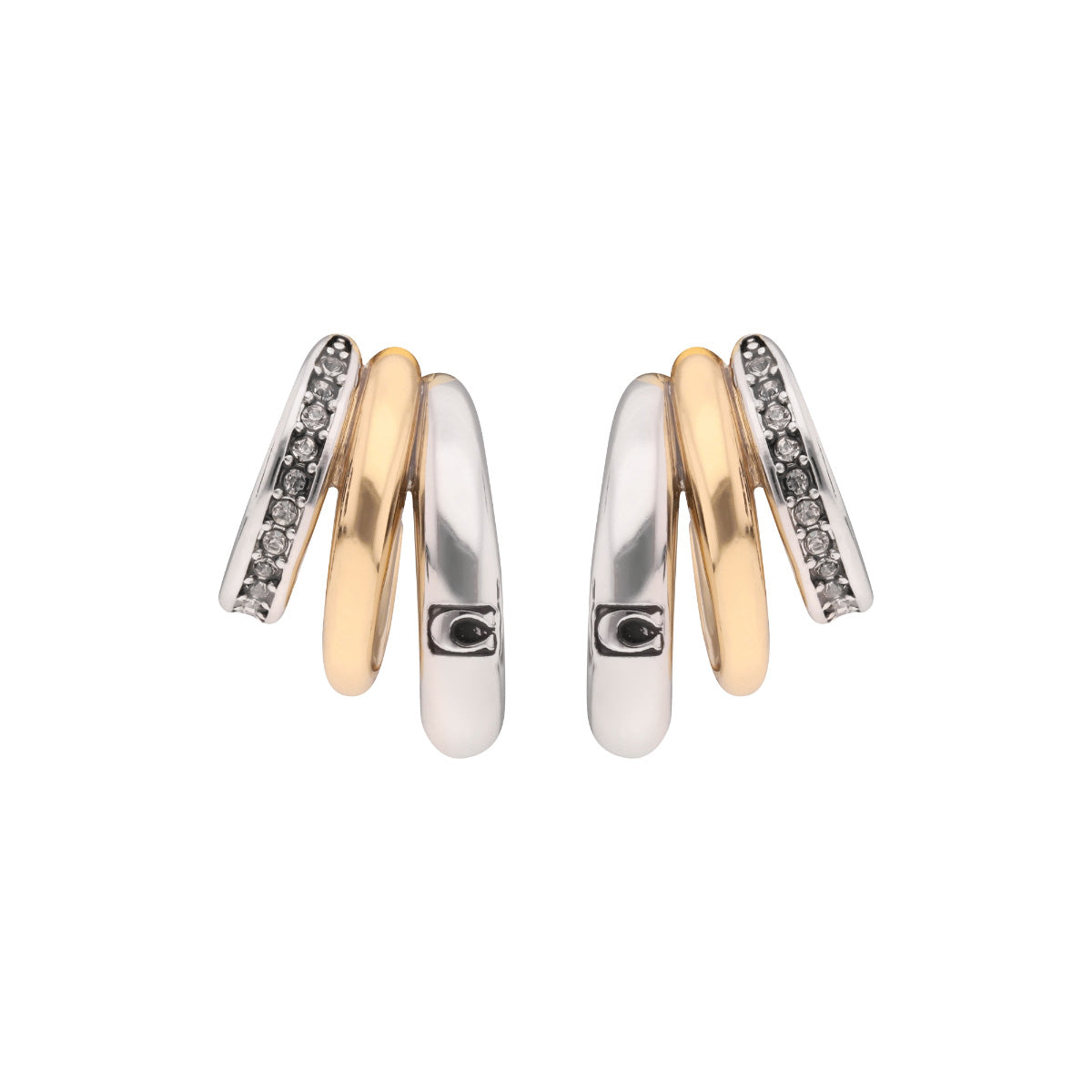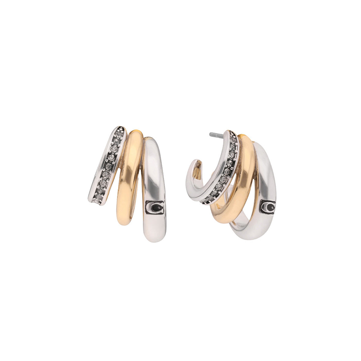 Aretes color bitono, coach, forma circular tipo corto en bitono conformada por tres dos delicados aros lizos y uno más pequeño con detalle pavonado, cierre tipo poste, familia 11.1 tubular, 1 par de aretes