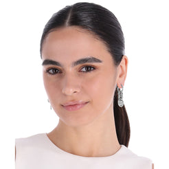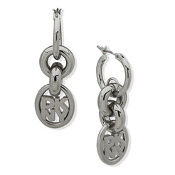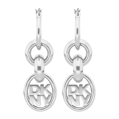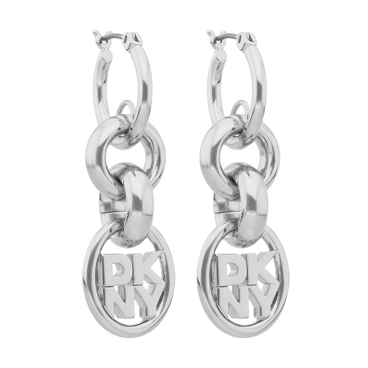 Aretes color plateado dkny forma logo tipo largos , cierre tipo broche, familia maggie, contenido 1 par de aretes