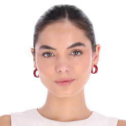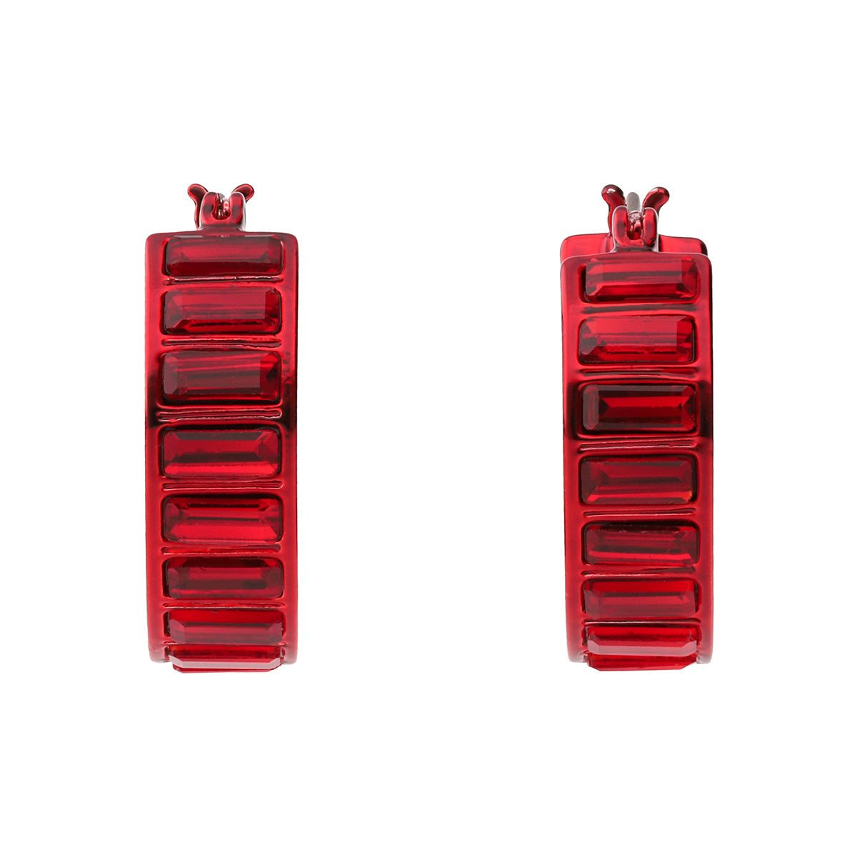 Aretes color rojo dkny forma circular tipo arracada estándar, cierre tipo poste , familia rivet logo f25, contenido 1 par de aretes