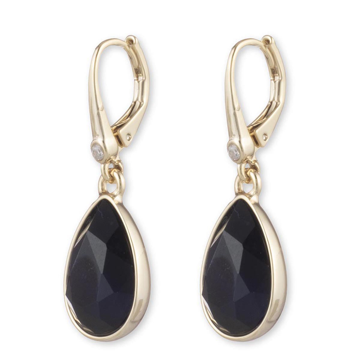 Aretes dorado marca dkny de silueta colgante con cristal en forma de gota negro