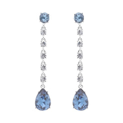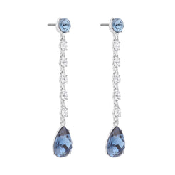 Aretes color plateado, givenchy, forma gota tipo lineal con incrustaciones de cristal en color azul marino, cierre tipo poste, familia daydreamin' denim, contenido 1 par de aretes