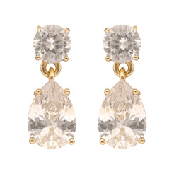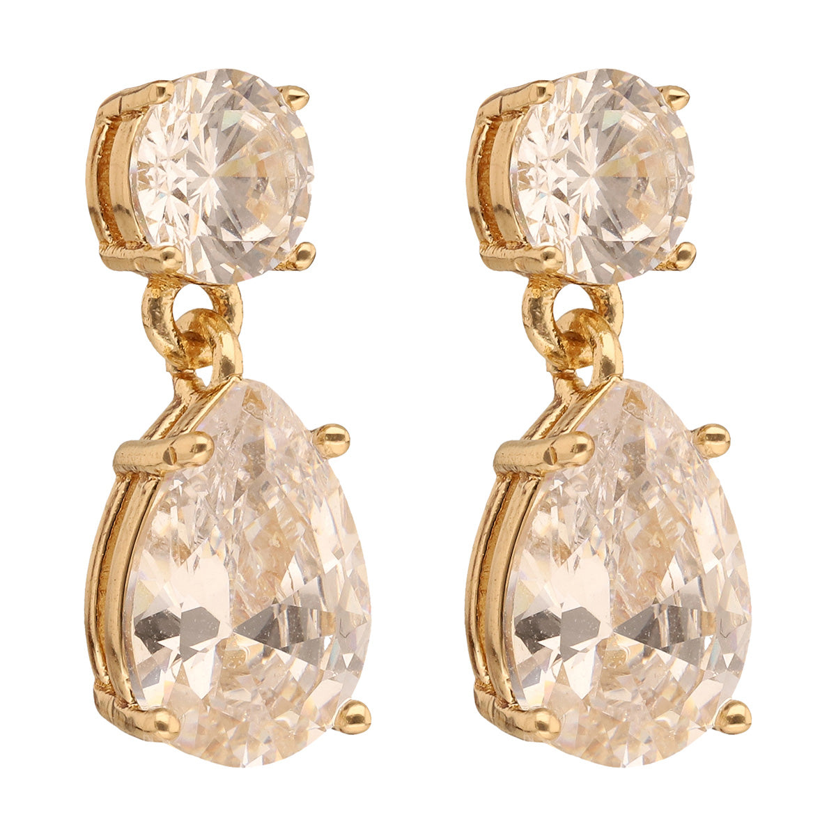 Aretes color dorado, givenchy, forma pera tipo colgante corto con incrustaciones de zirconia en color cristal, cierre tipo poste, familia givenchy rp gold recolors, contenido 1 par de aretes