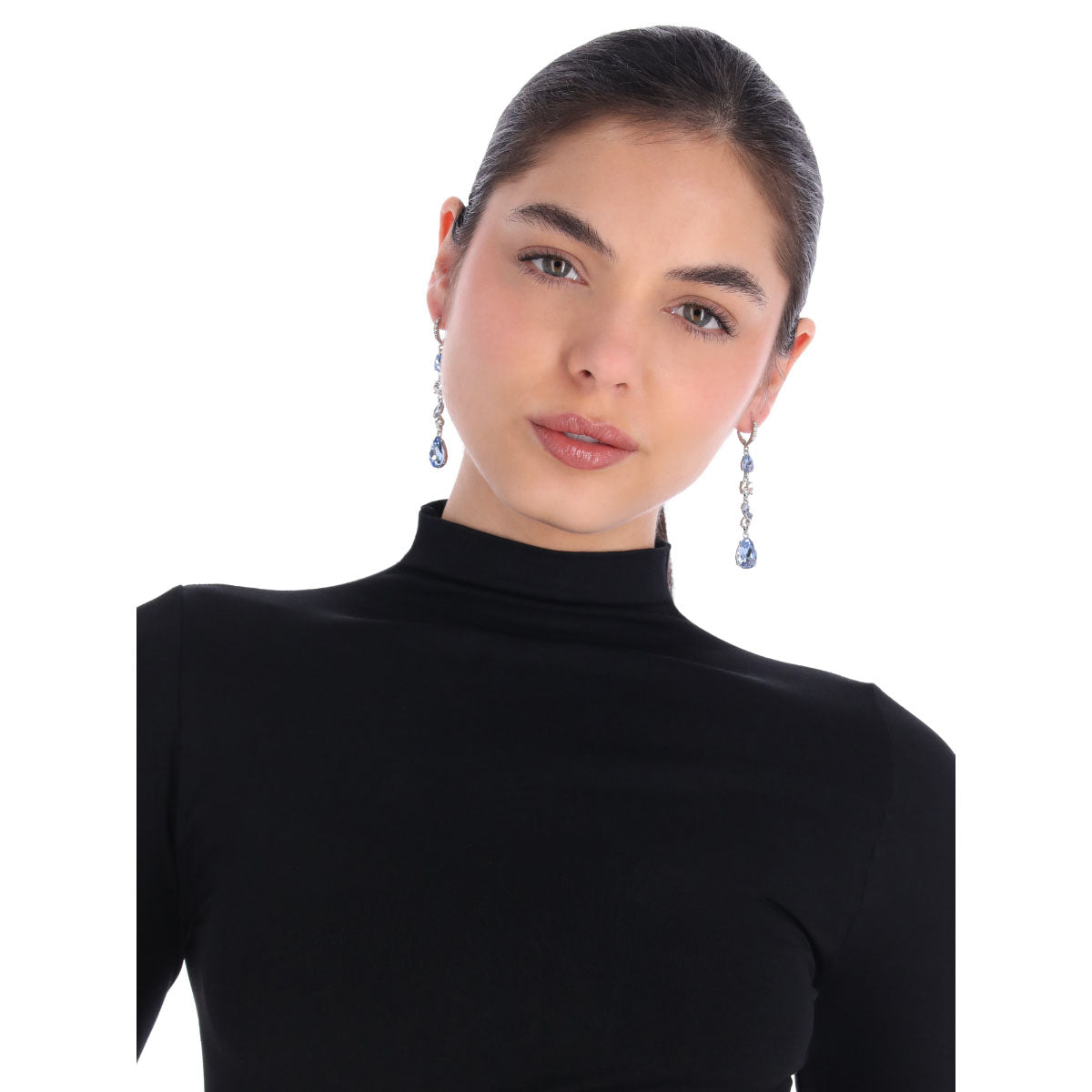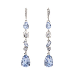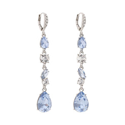 Aretes color plateado, givenchy, forma gota tipo lineal con incrustaciones de cristal en color azul y plateado, cierre tipo gancho francés, familia glass slipper, contenido 1 par de aretes