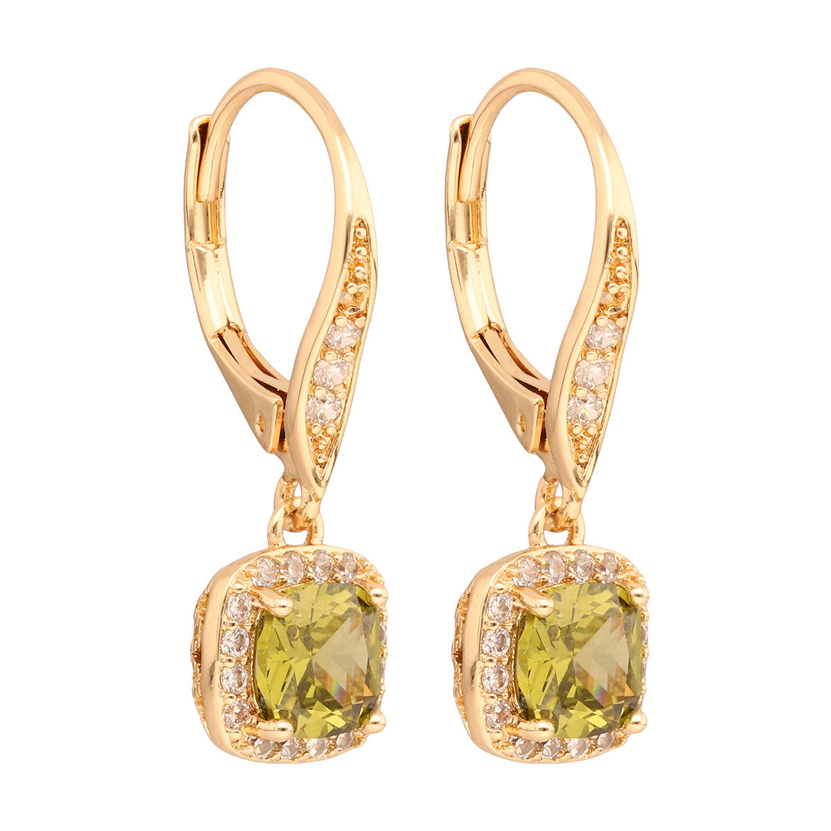 Aretes color dorado, napier, forma colgante corto con cubic zirconia, esmeralda cierre tipo gancho francés , familia social clr cz key item ears, contenido 1 par de aretes