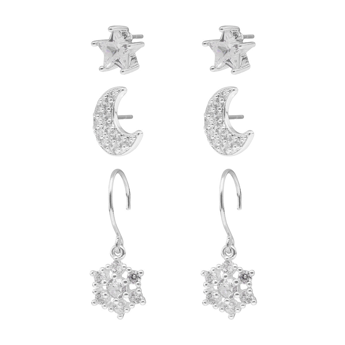 Aretes color plateado, napier, forma multipack tipo corto con cubic zirconia, cristal cierre tipo poste , familia social cz ears m2, contenido 1 par de aretes