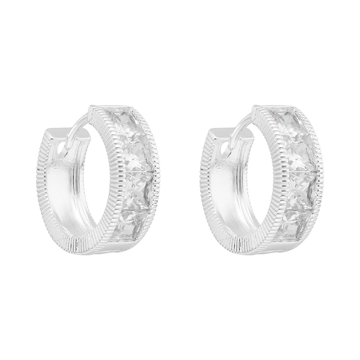 Aretes color plateado, napier, forma arracada chica tipo corto , cristal cierre tipo poste , familia social cz ears m1, contenido 1 par de aretes