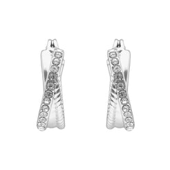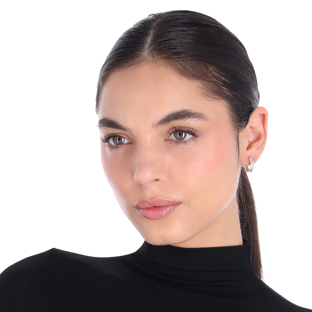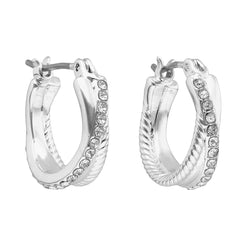 Aretes color plateado, lauren ralph lauren, forma circular tipo arracada con cristales en color cristal, cierre tipo bisagra con clic, familia jovie, contenido 1 par de aretes