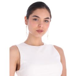 Aretes color dorado, ralph lauren, forma hilo tipo lineal con incrustaciones de cristal, cierre tipo gancho francés, familia ophelia, contenido 1 par de aretes