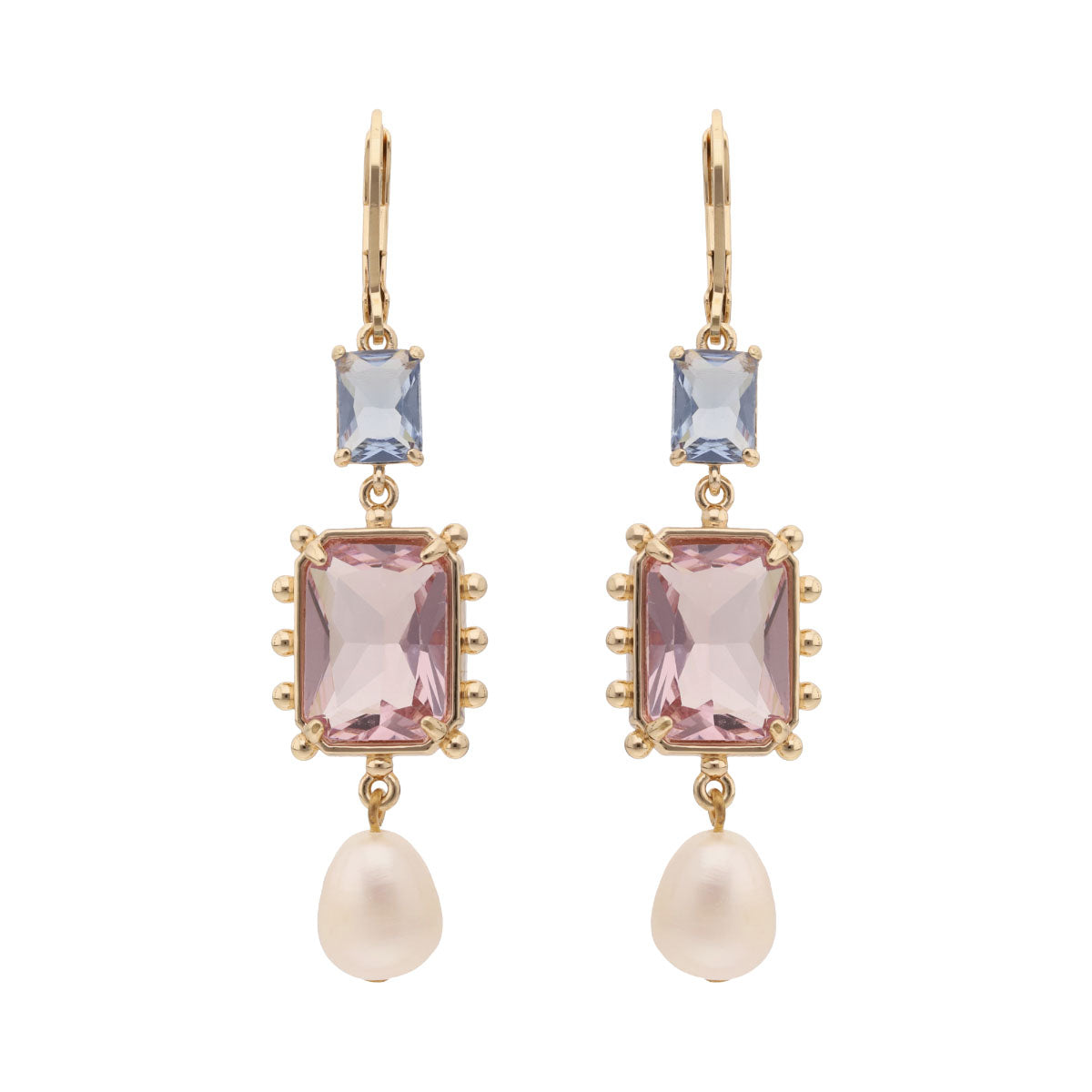 Aretes Color Dorado, Ralph Lauren, Forma Varios Tipo Lineal Con Cristal Y Acrílico En Varios Colores, Cierre Tipo Gancho Francés, Familia Bridgette, Contenido 1 Par De Aretes