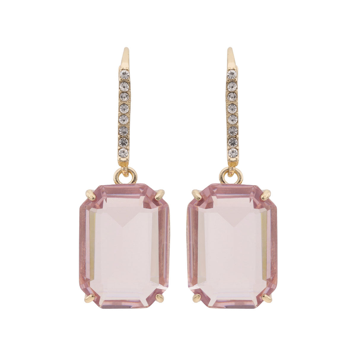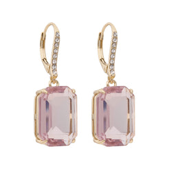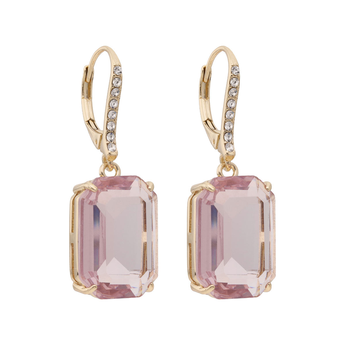 Aretes color dorado, ralph lauren, forma cuadrado tipo colgante con cristles en color rosa, cierre tipo gancho francés, familia lrl spring 25 gifting, contenido 1 par de aretes