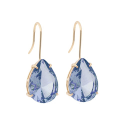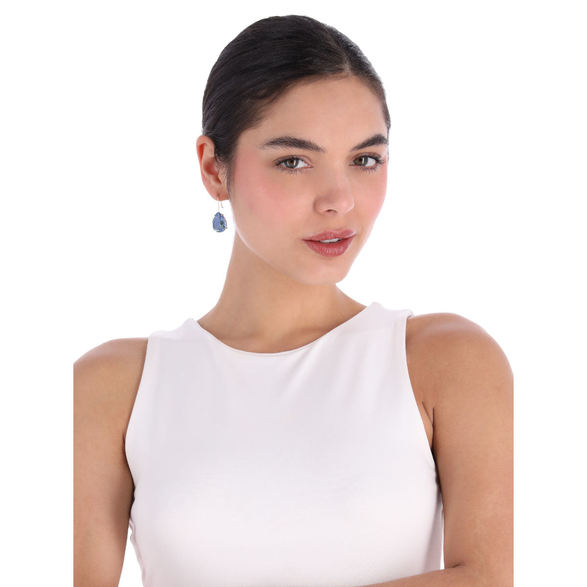 Aretes color dorado, ralph lauren, forma gota tipo colgante con cristal en color azul, cierre tipo gancho francés, familia bridgette, contenido 1 par de aretes
