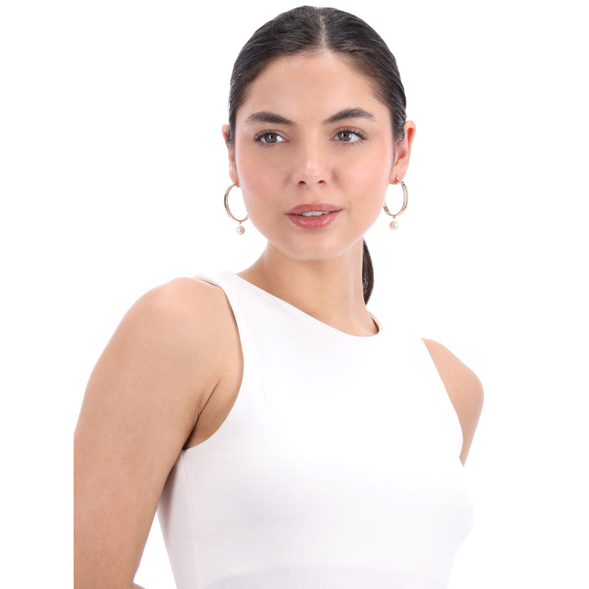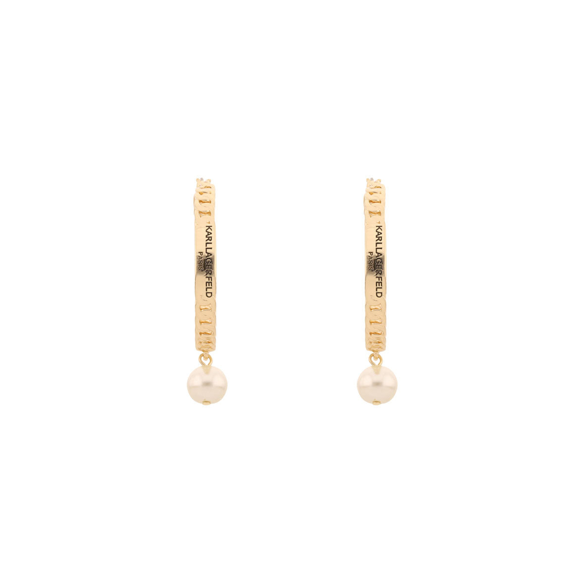 Aretes karl lagerfeld color dorado forma esfera con detalles de imitación perla beige