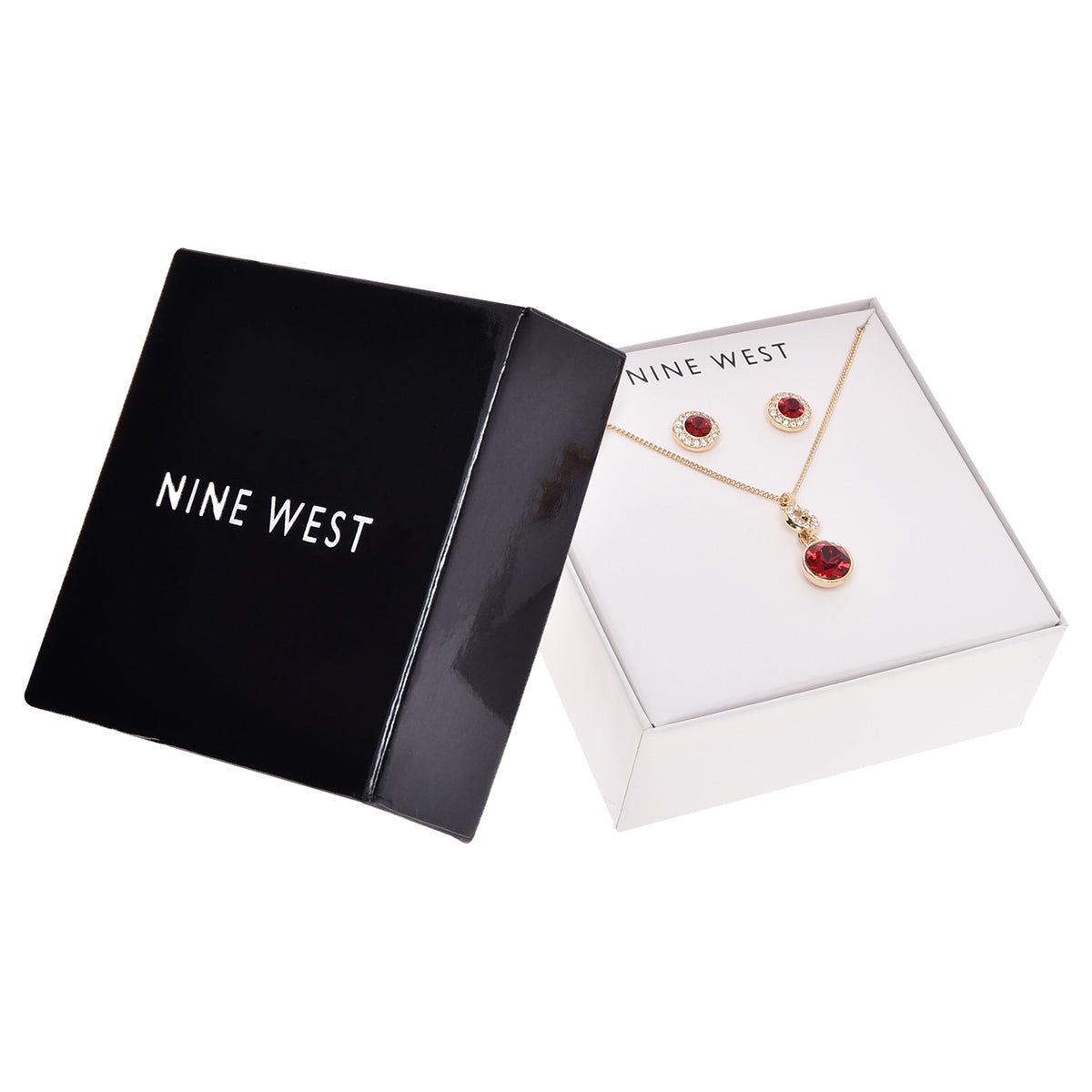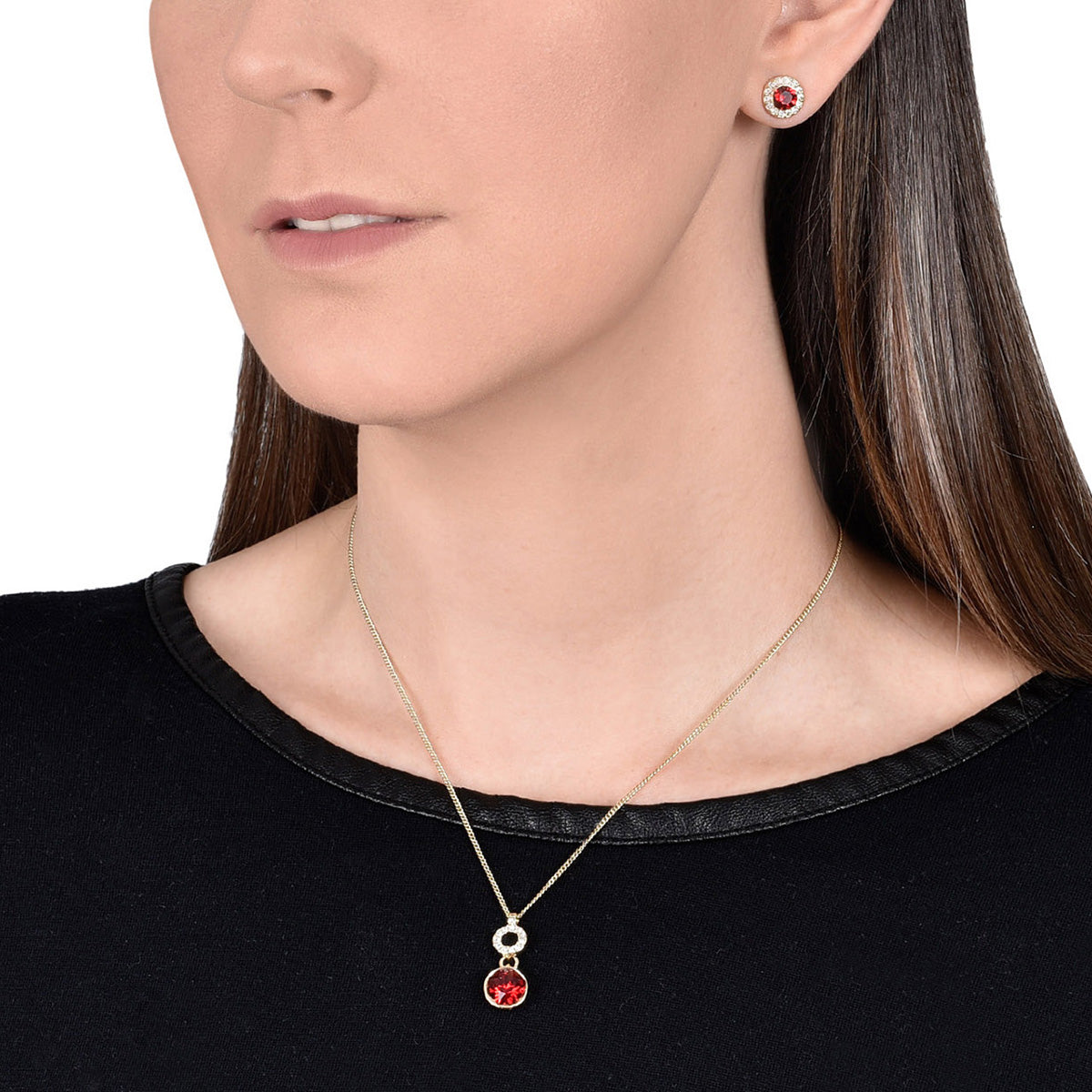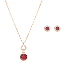 Set dorado de collar con colgante y aretes tipo bot?n con detalles de cristal rojo