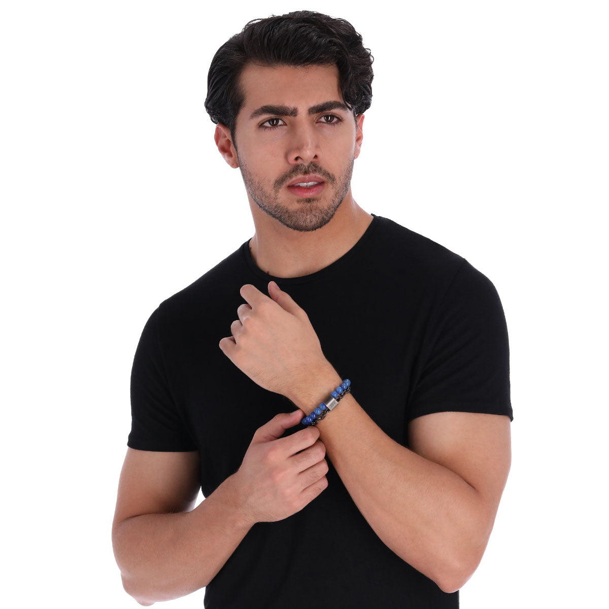 Brazalete caballero marca cat color azul niveles detalle cuentas color azul