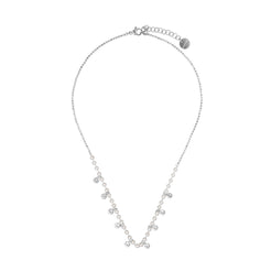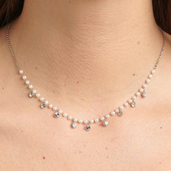 Collar de acero inoxidable 316l y perlas de concha con cristales colgantes color claro.