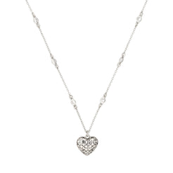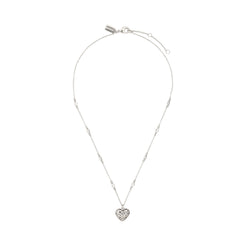 Collar color plateado, coach, forma corazón tipo sencillo de cadena delicada con dije en forma de corazón con textura de logo, cierre tipo pinza ajustable, familia quilted logo heart recolor, contenido 1 collar