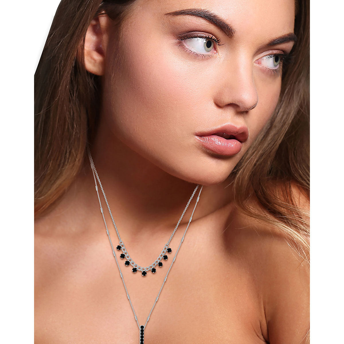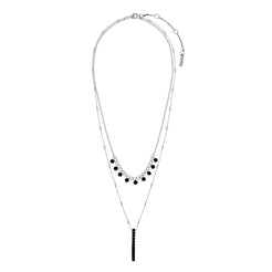 Collar color plata marca nine west multiniveles con 2 cadenas de diferente tamaño y dije en forma minimalista color negro