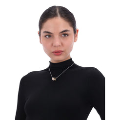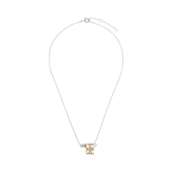 Collar color plateado, coach, forma letra c tipo corto cadena fina con aros dorados, cierre tipo pinza ajustable, familia 8.1 safety pin & pearls, contenido 1 collar