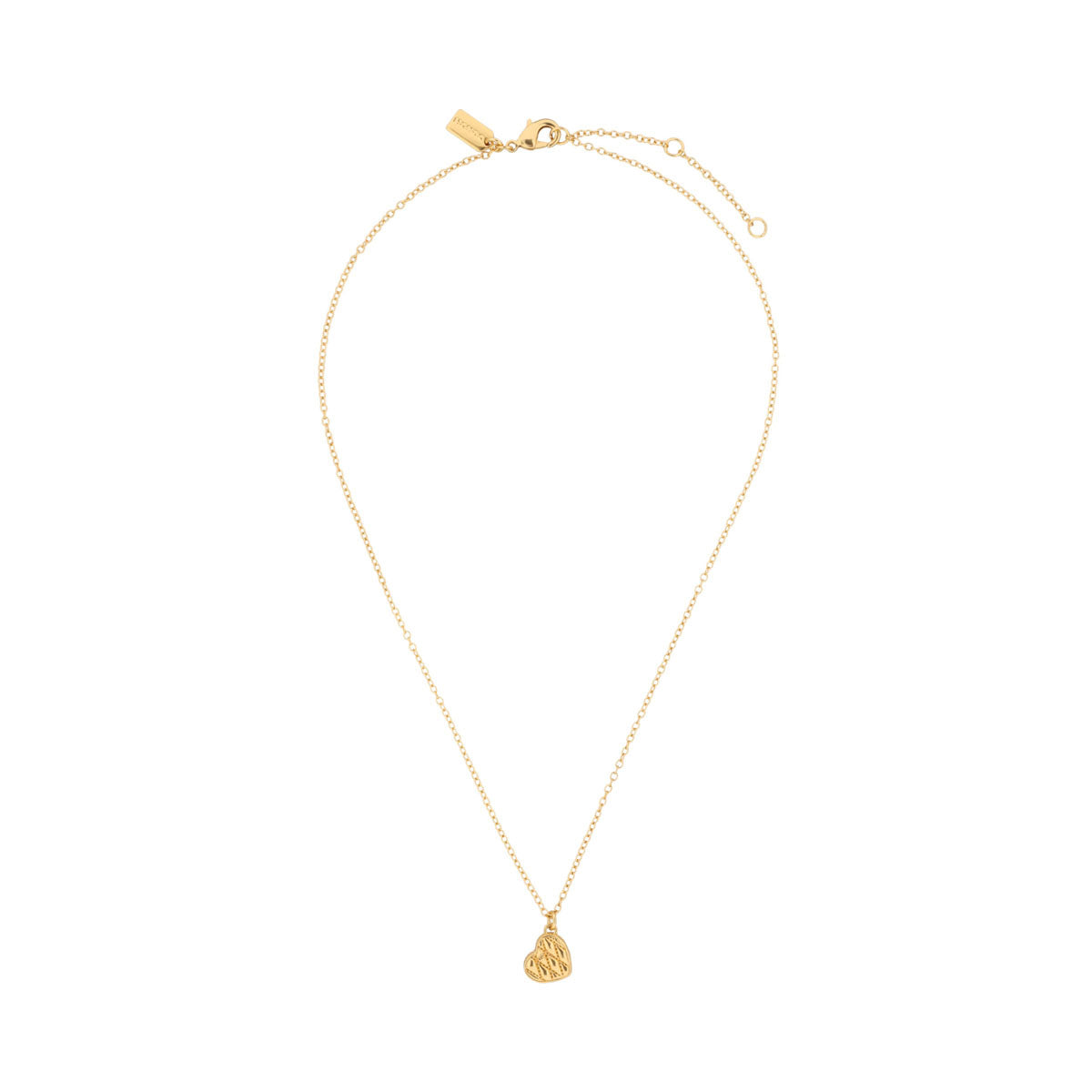 Collar color dorado, coach, forma corazón tipo corto cadena fina con dije corazón, cierre tipo pinza ajustable, familia 8.1 handbag shop, contenido 1 collar