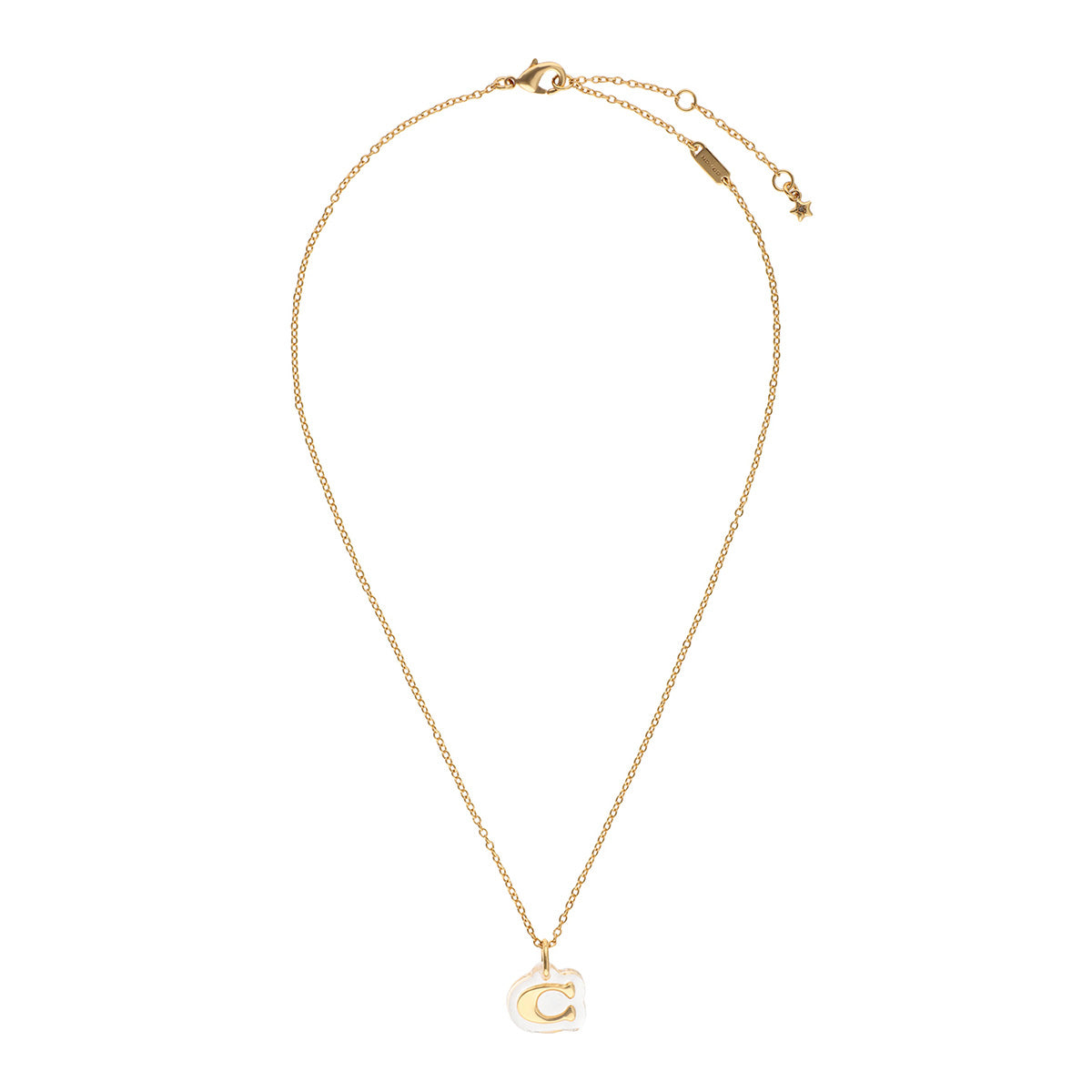 Collar color dorado , coach, forma "c" tipo charms con logo c, cierre tipo pinza ajustable, familia 10.1 embedded lucite, contenido 1 collar