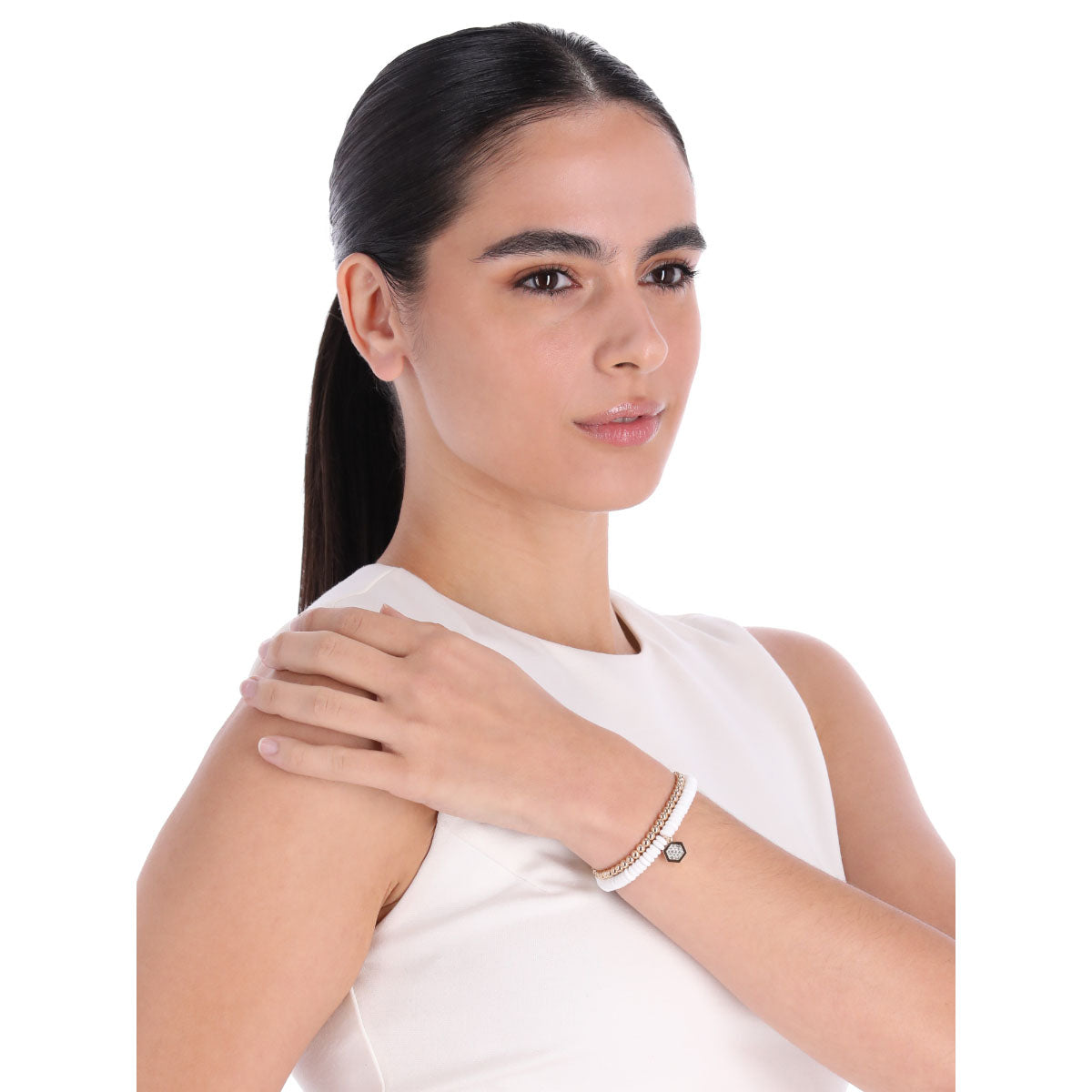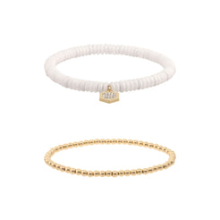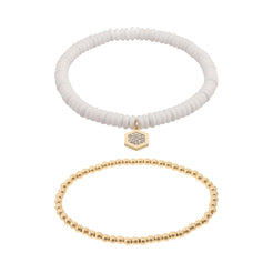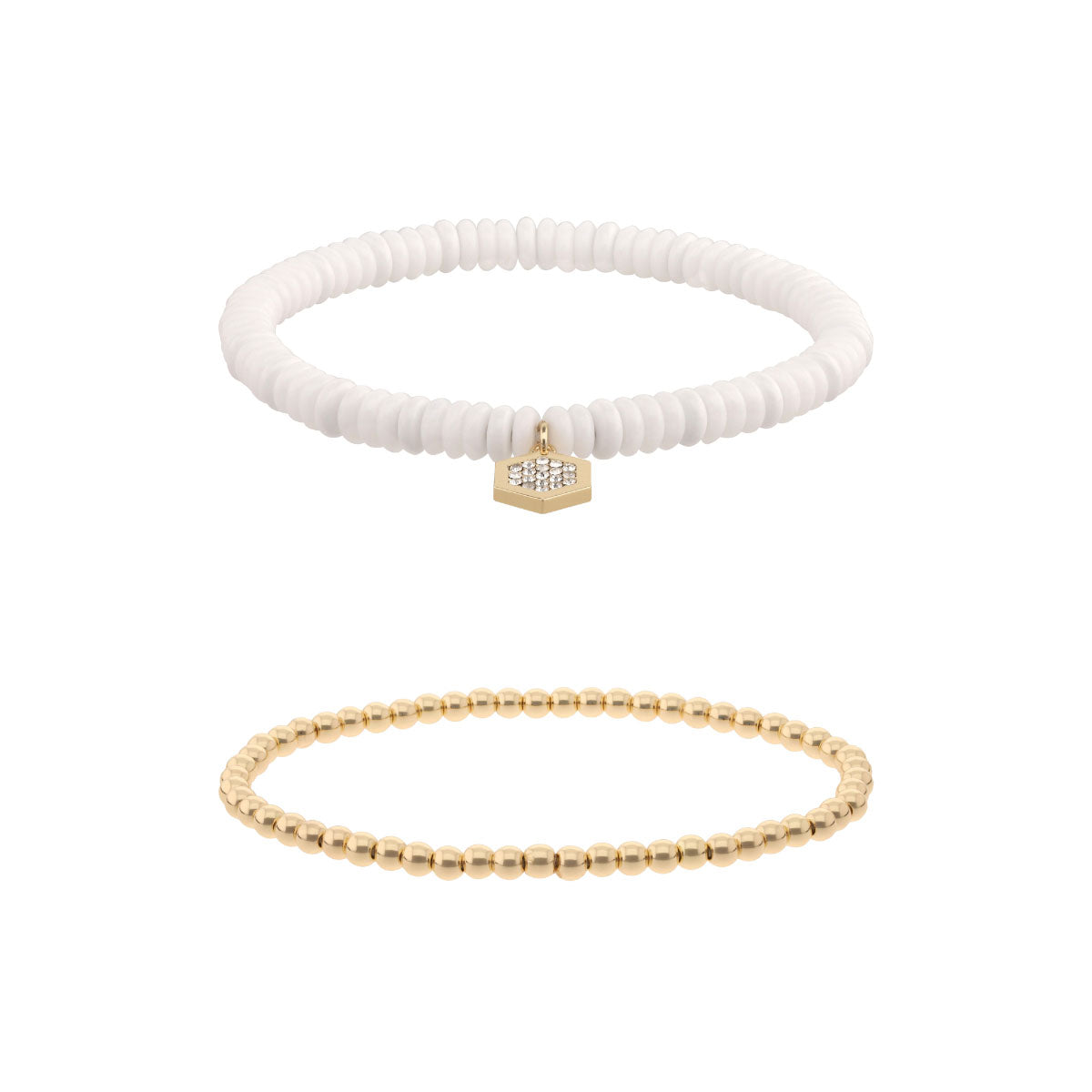Pulsera color dorado/blanco dkny forma hexagono tipo ajustable doble pulsera, cierre tipo ajustable, familia katana, contenido 1 par de pulseras