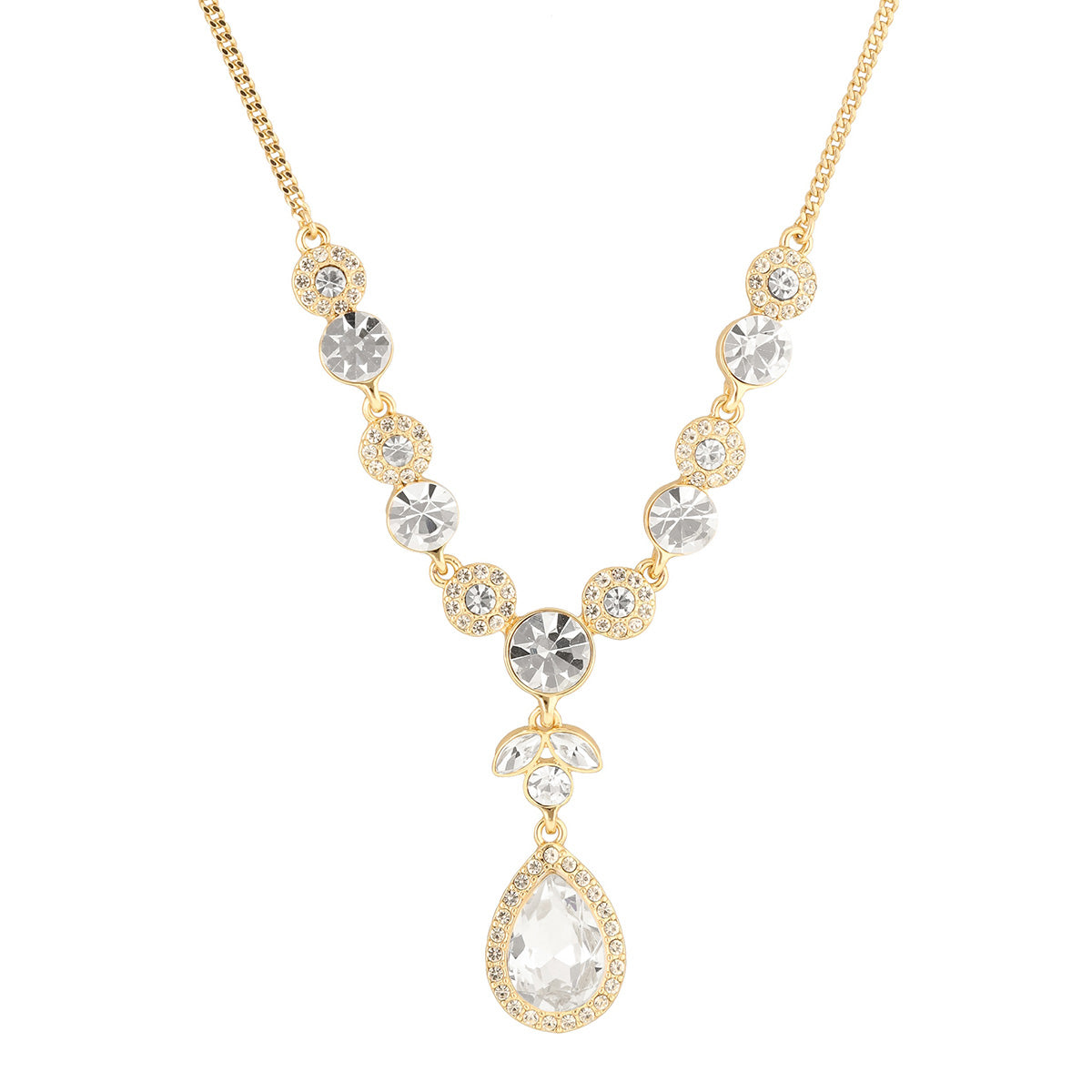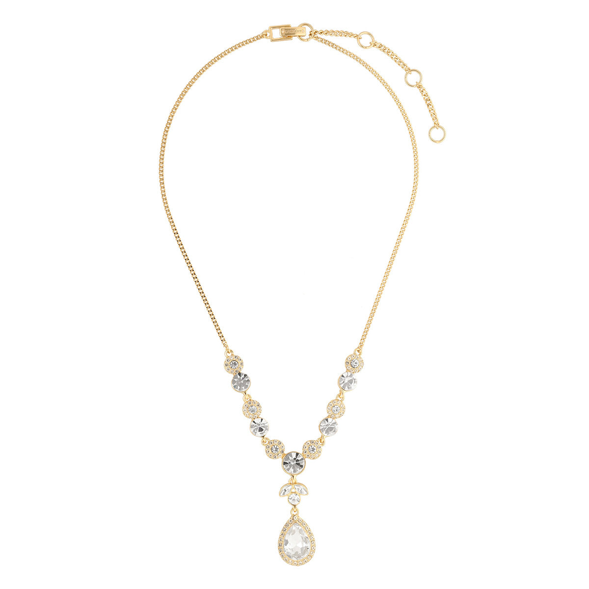 Collar color dorado, givenchy, forma pera tipo corbatín con incrustaciones de cristal en color cristal, cierre tipo presión, familia givenchy rp gold recolors, contenido 1 collar