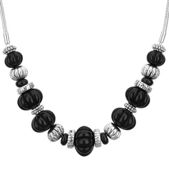 Collar color plateado, napier, forma sencillo tamaño grande con cuentas de fantasía, negro cierre tipo pinza ajustable , familia midnight beads, contenido 1 collar