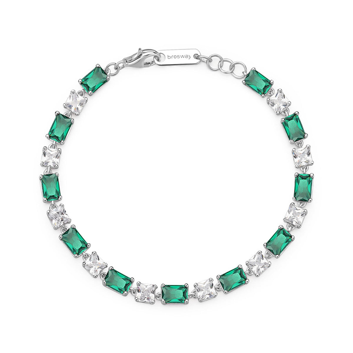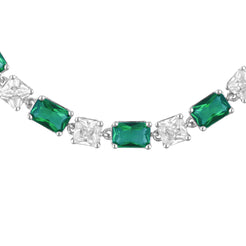 Brazalete de plata de ley 925. con circonita cúbica color claro y circonitas baguette de color esmeralda.