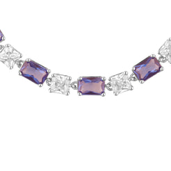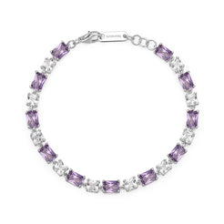 Brazalete de plata de ley 925. con circonita cúbica color claro y circonitas baguette de color amatista.
