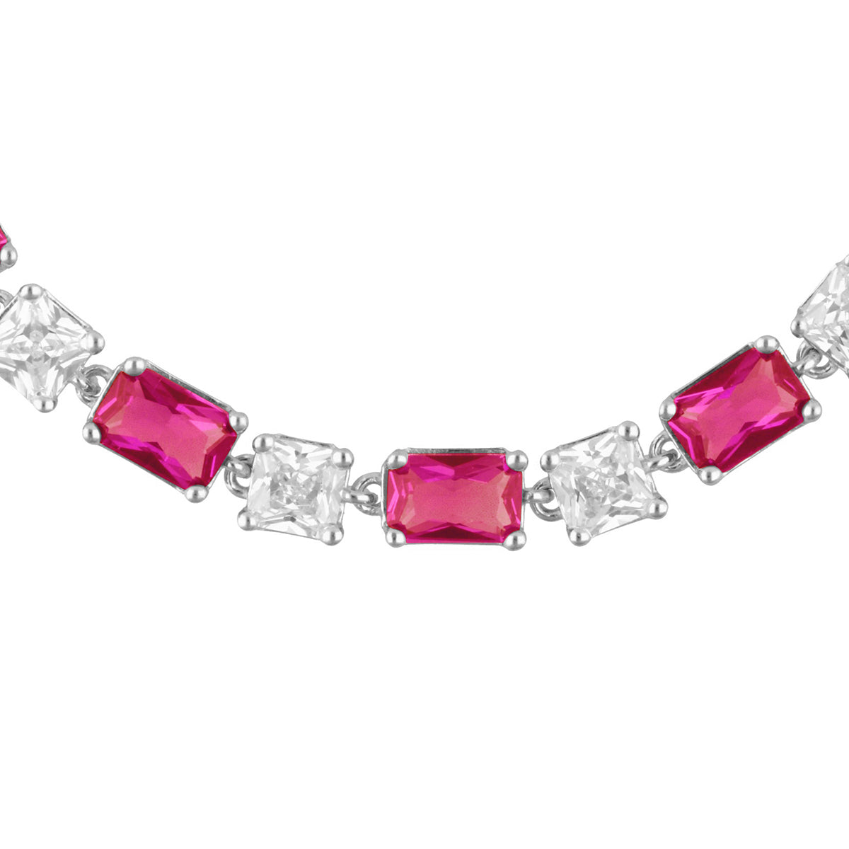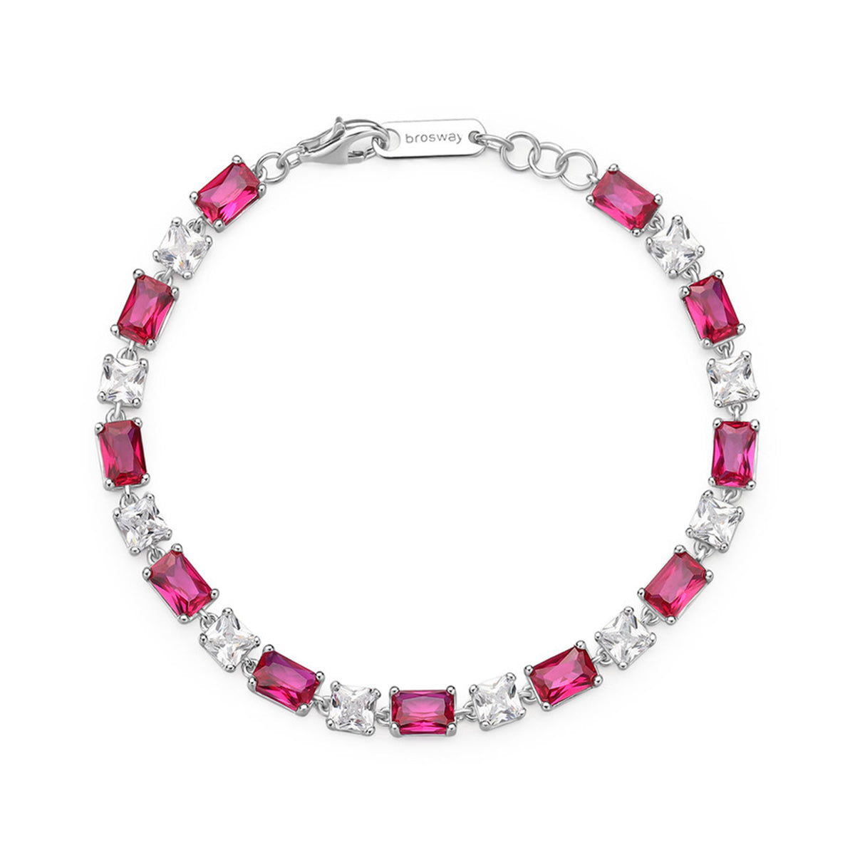 Brazalete de plata de ley 925. con circonita cúbica color claro y circonitas baguette de color rubí.