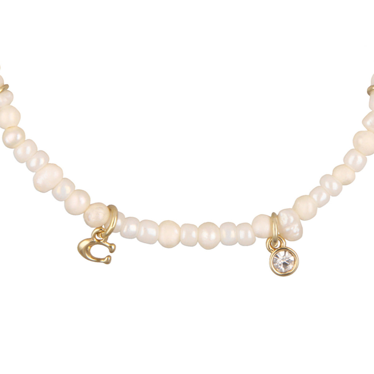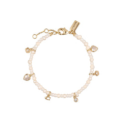 Pulsera color perla, coach, forma varios tipo charms con cadena de cuentas tipo perla y charms de formas varias y aplicaciones de cristal, cierre tipo pinza ajustable, familia horse & carriage with pearls, contenido 1 pulsera