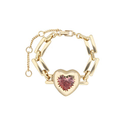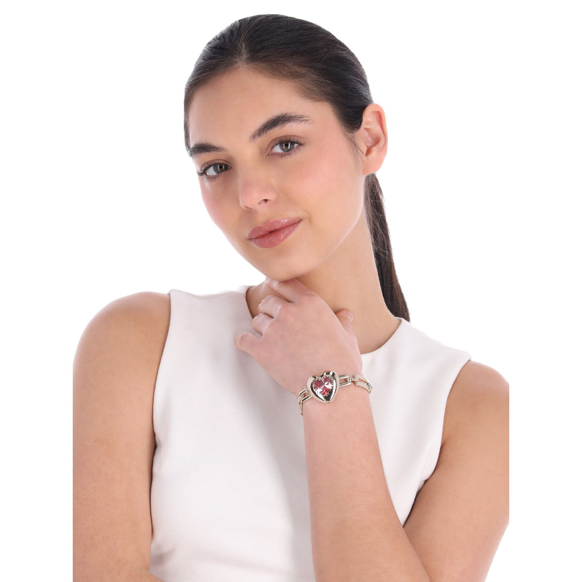 Brazalete color dorado, givenchy, forma corazón tipo flexible de cadena de eslabones gruesos e incristación de cristal en color rosa, cierre tipo presión, familia locked in love, contenido 1 brazalete
