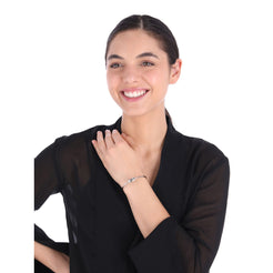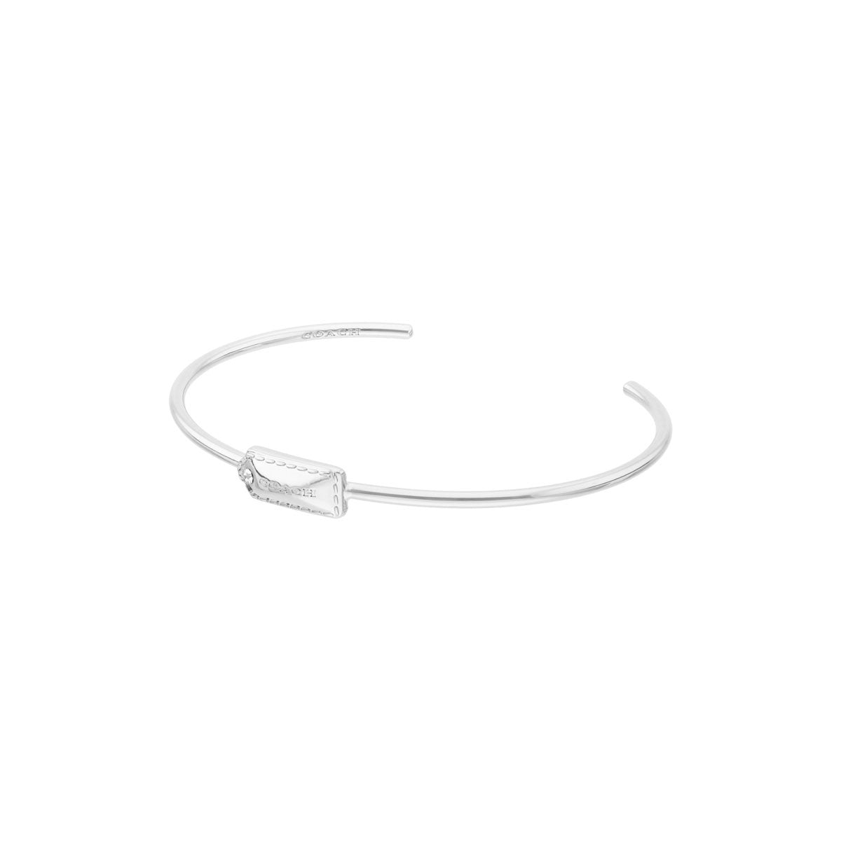 Pulsera color plateado, coach, forma logo tipo cuff con charm de logo, cierre tipo pull on, familia 8.1 safety pin & pearls, contenido 1 pulsera