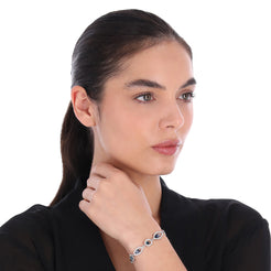 Brazalete color plateado, givenchy, forma varios tipo flexible con incrustaciones de cristal en color azul, cierre tipo presión, familia big spender holiday 25, contenido 1 brazalete