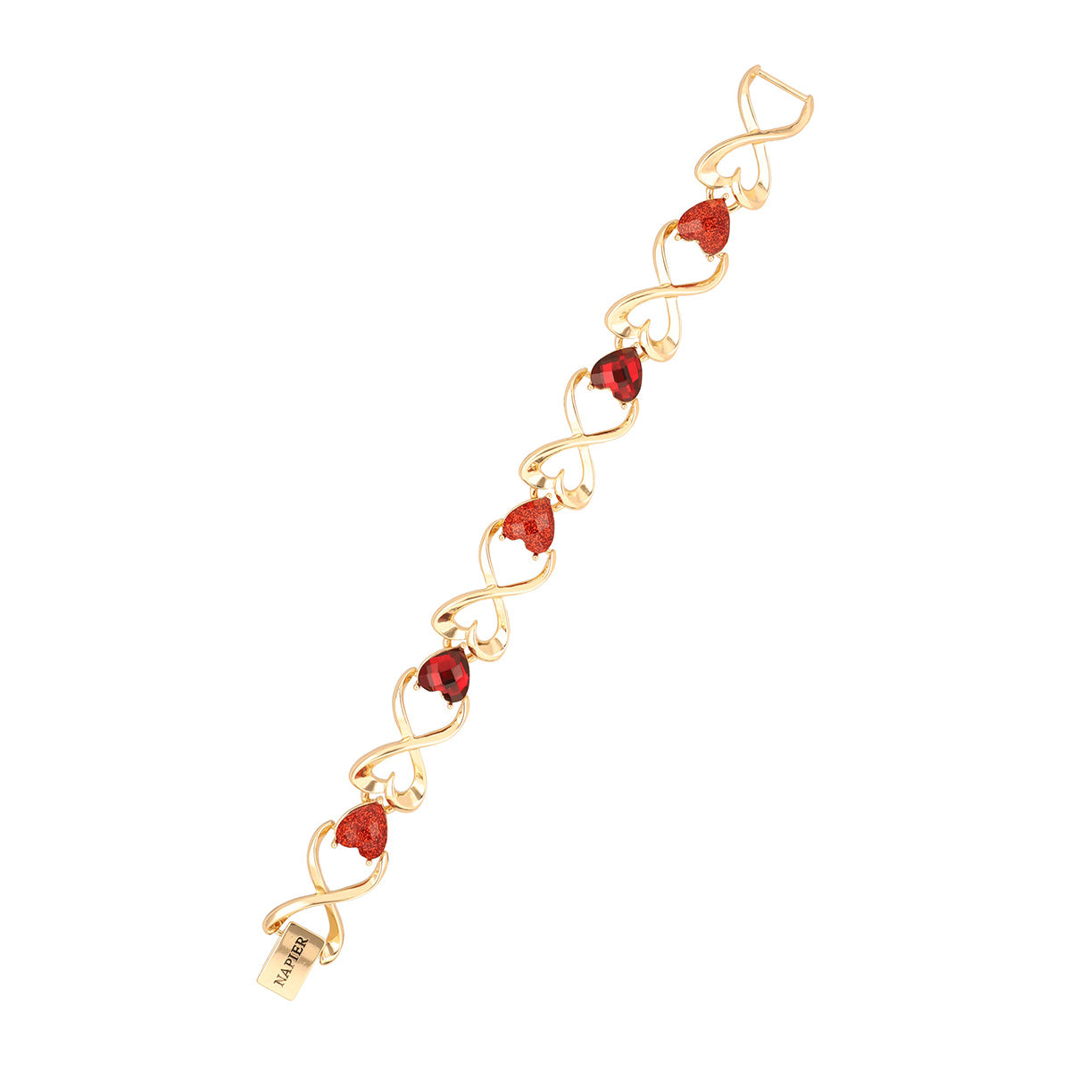 Pulsera color dorado, napier, forma sencilla tipo con cristal de fantasia , siam cierre tipo broche , familia love hearts, contenido 1 pulsera