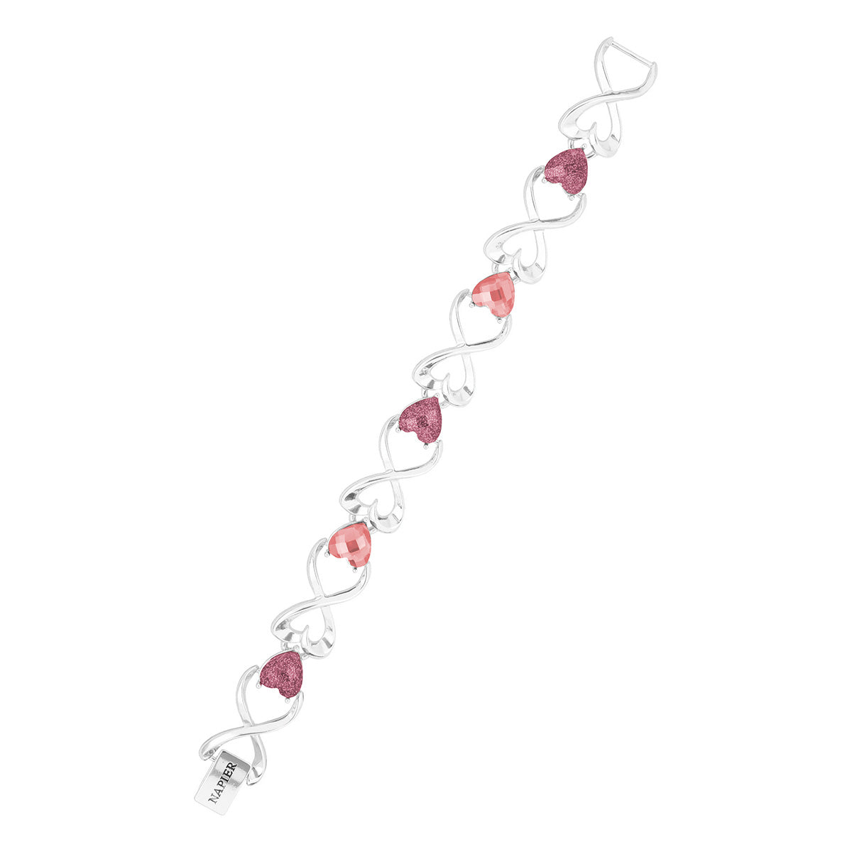 Pulsera color plateado, napier, forma sencilla con cristal de fantasia , rosa cierre tipo brocche , familia love hearts, contenido 1 pulsera