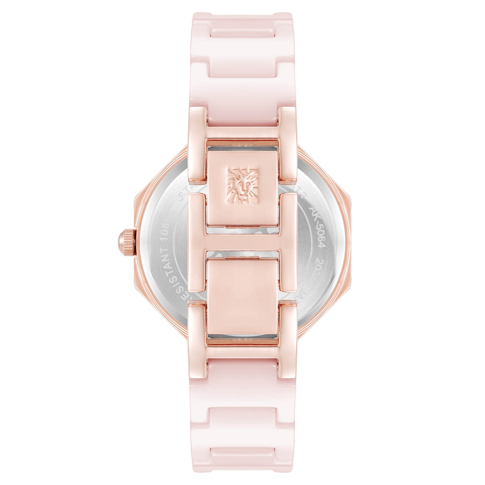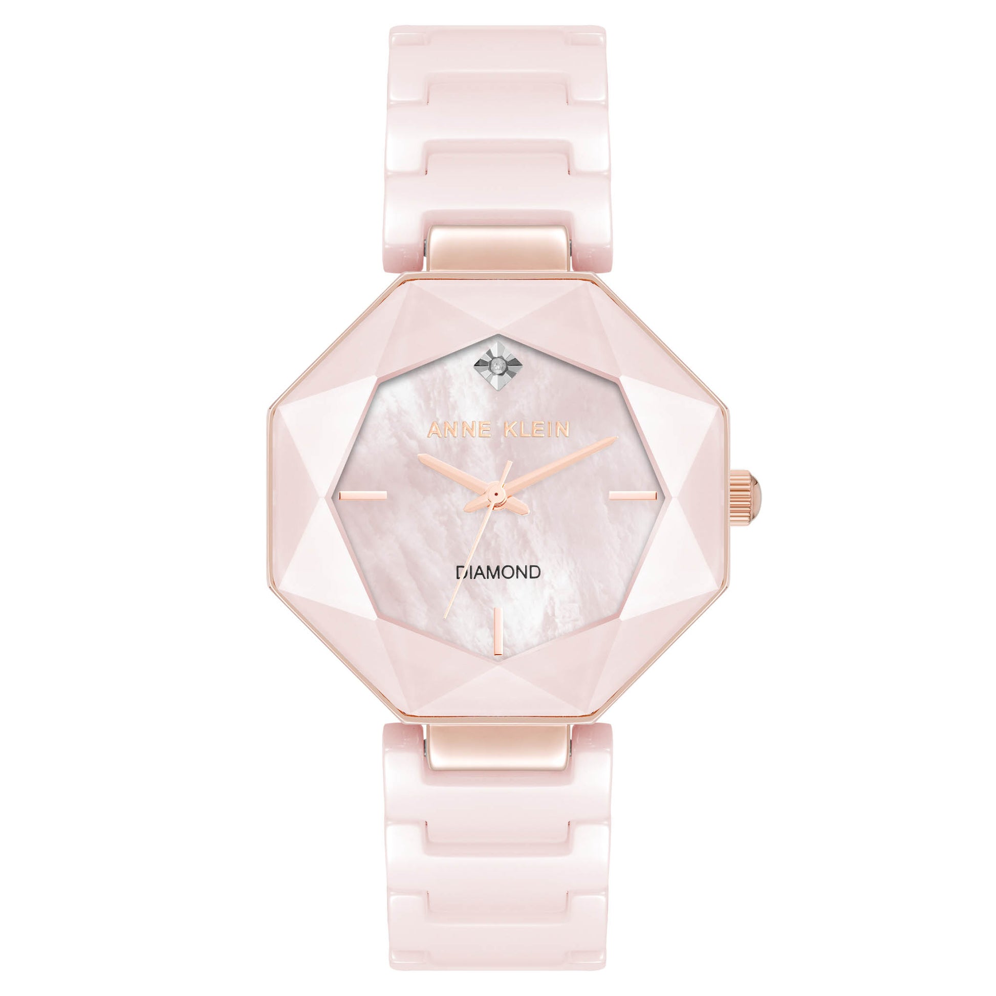 Reloj Anne Klein para Dama Material Ceramica color Pulsera Rosa con cristal facetado y cristal decorativo, caratula madre perla color rosa