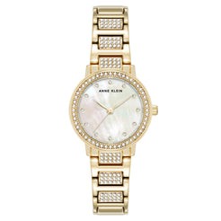 Reloj Anne Klein para Dama Material Aleación de metal color Pulsera Dorado con caratula madre perla color blanco y cristales decorativos
