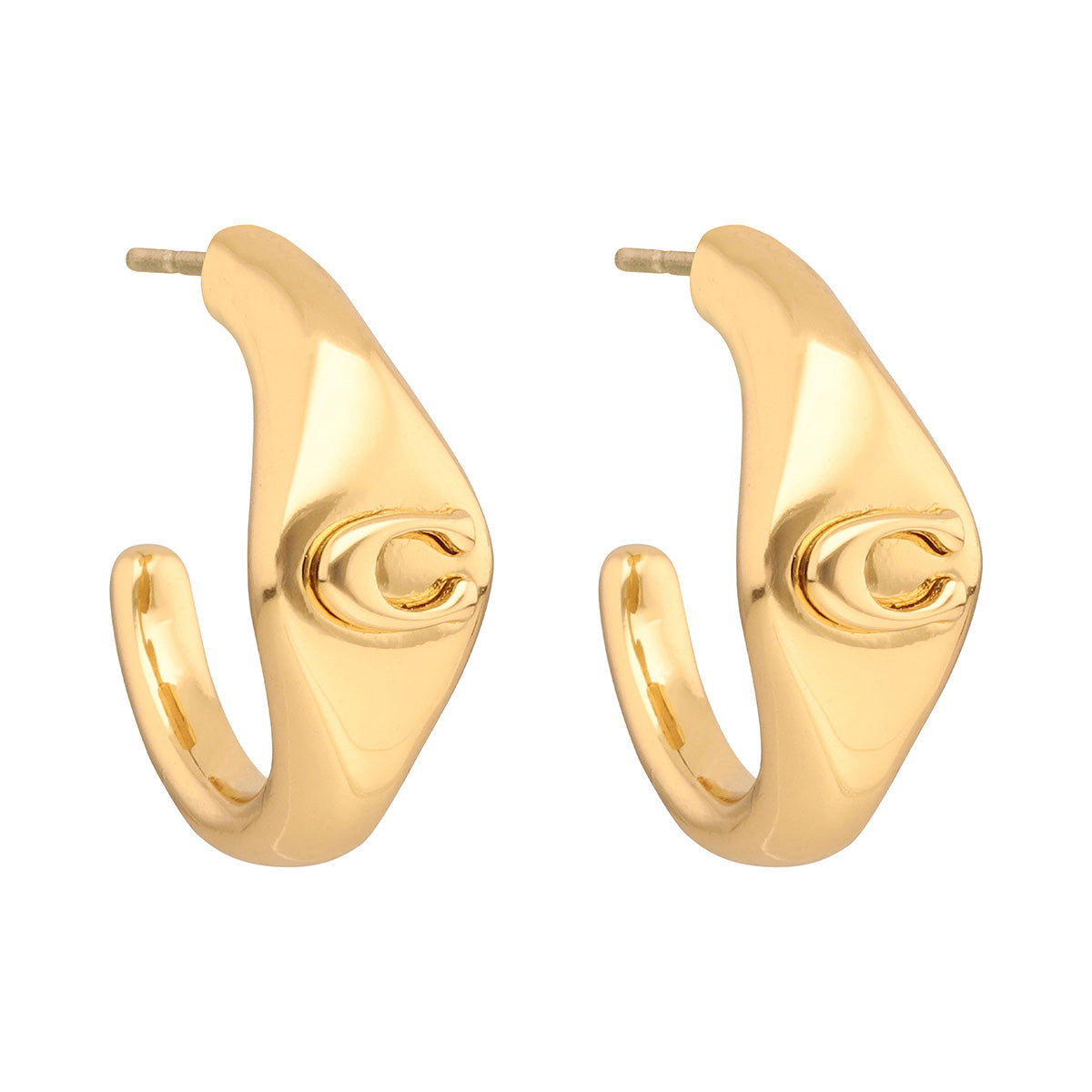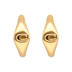 Aretes color doardo, coach, forma tipo arracada con logo c, , familia 9.1 signet heirlooms, contenido 1 par de aretes
