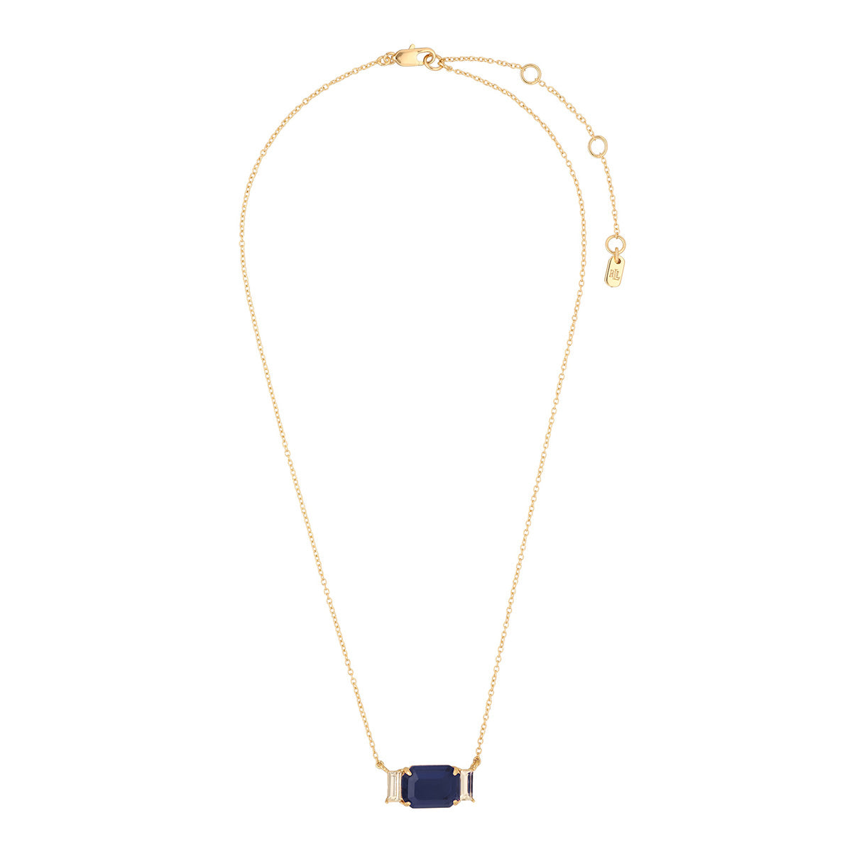 Box set color dorado, lauren ralph lauren, forma rectangular tipo corto de cadena delicada con crisal color azul, cierre tipo pinza ajustable, familia lrl holiday 25 gifting, contenido 1 collar
